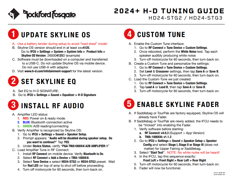Ce qui suit est requis lors de l'installation d'un kit HD24-STG2 ou HD24-STG3 dans un H-D 2024+.